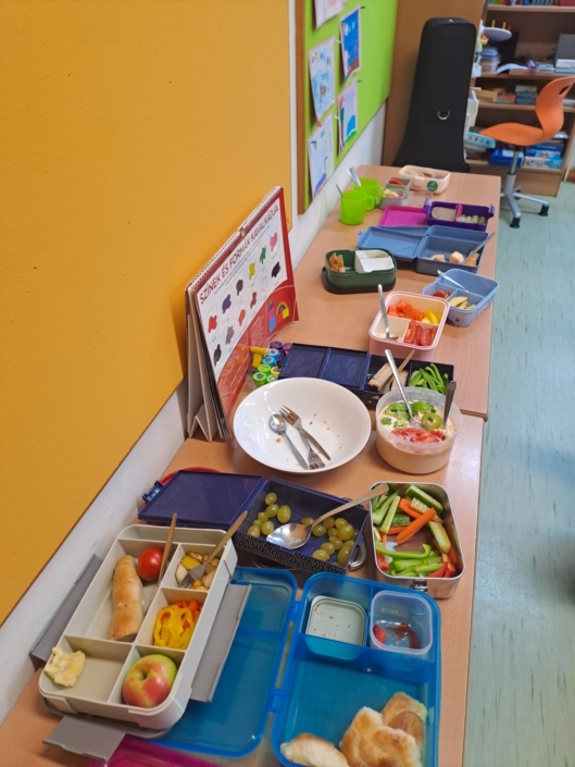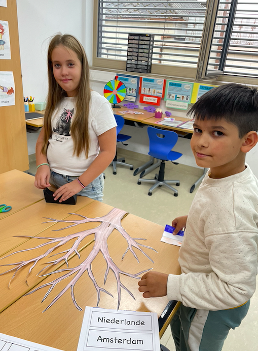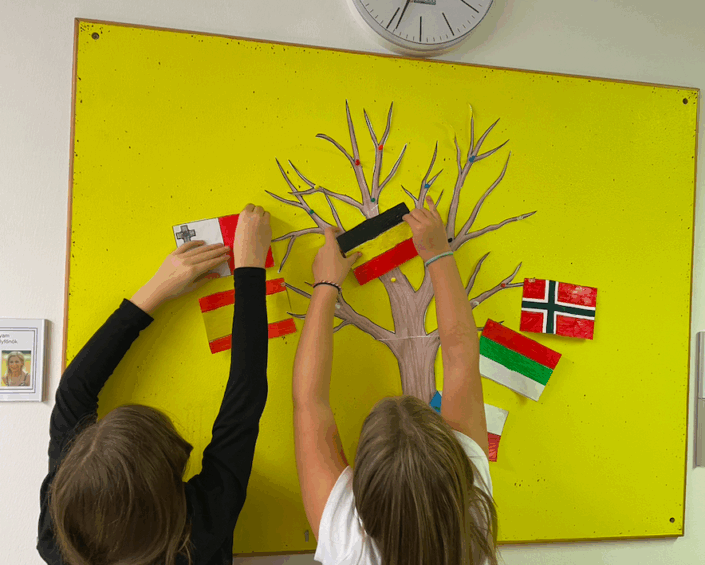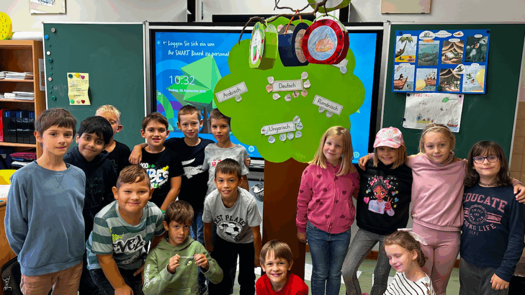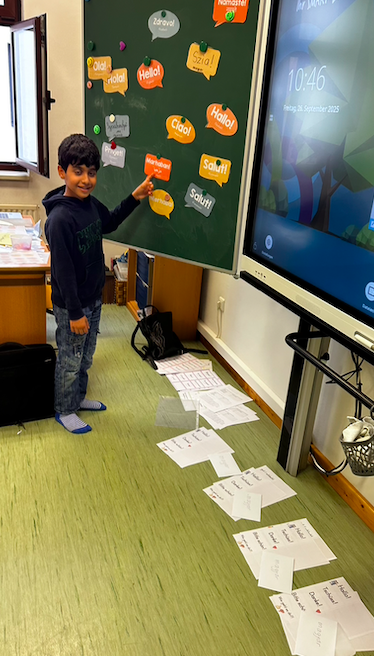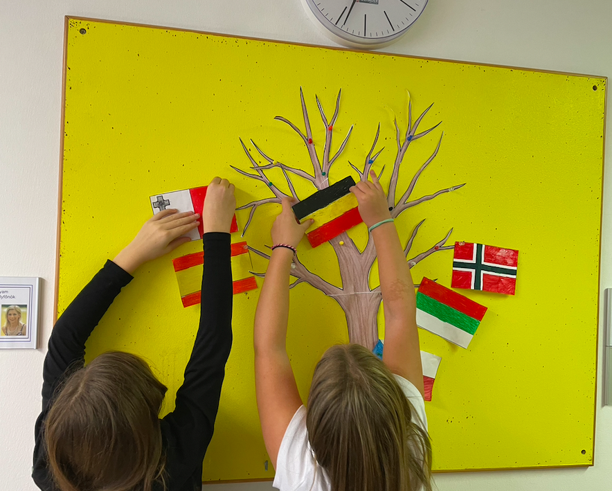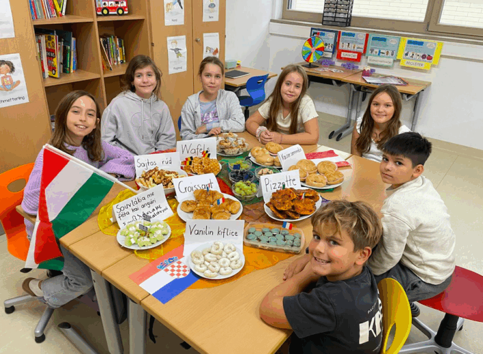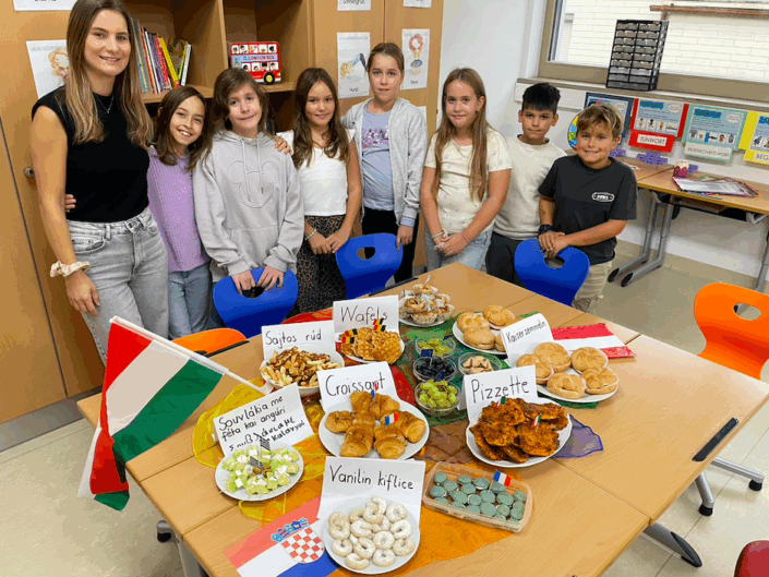 Az Európai Nyelvek Napja alkalmából népiskolánkban a kultúrák és nyelvek sokszínűségét ünnepeltük. A gyerekek „nyelvfákat“ készítettek, amiken saját származási nyelvükből származó szavakat írtak fel. Ezek a színes alkotások a kölcsönös megértést és az eszmecserét szimbolizálták. Emellett a tanulók jellegzetes ételeket is hoztak családjuk származási országaiból, így az egész iskola egy kulináris utazáson vehetett részt Európa-szerte. Az olasz pizzától a török burekig – a nap az együtt megélt sokszínűség ünnepe volt. Az Európai Nyelvek Napja ráirányította a figyelmet a nyelvek fontosságára, mint a kultúrák közötti hídra. A gyerekek így nemcsak saját nyelvüket tanulhatták meg jobban értékelni, hanem új kultúrákat is felfedezhettek. Már most örömmel várjuk e különleges nap következő ünnepét.