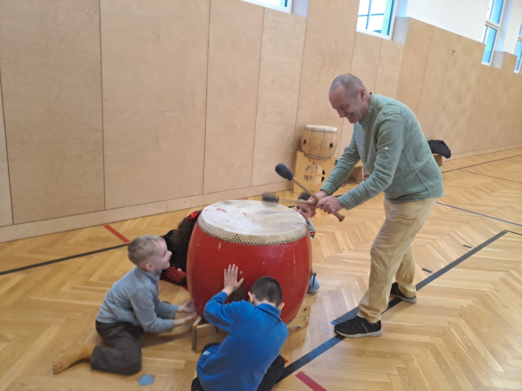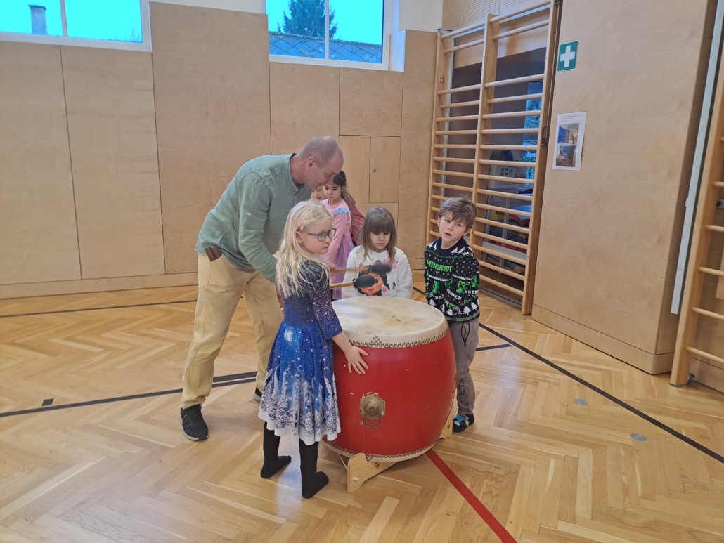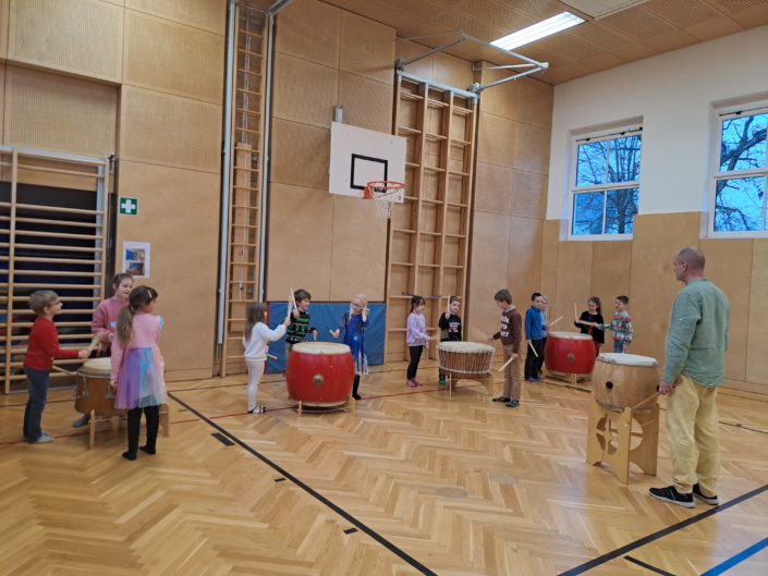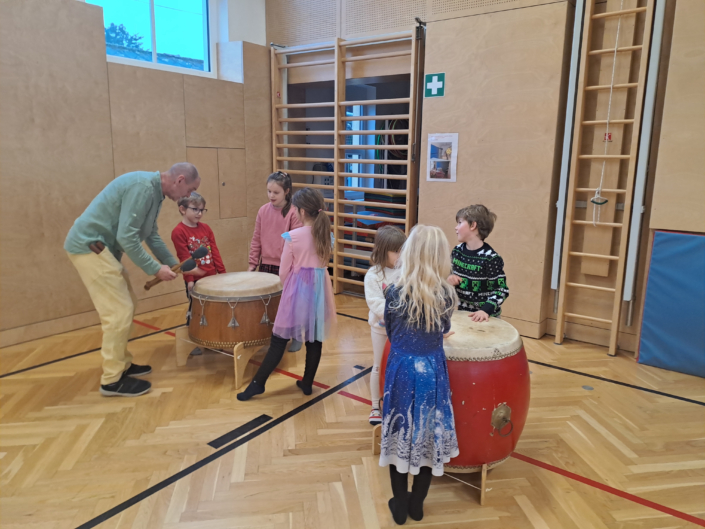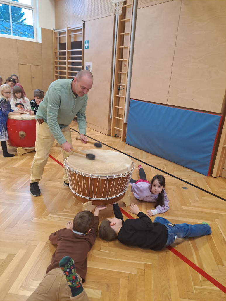 Durch gemeinsames Trommeln, rhythmische Spiele und Bewegung erleben die Kinder Zusammenhalt, gegenseitigen Respekt und Freude am Miteinander.