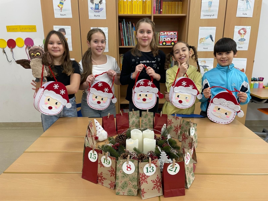 In der vorweihnachtlichen Zeit zieht ein besonderer Zauber durch die Schule. Zwischen Lichterketten und Kerzenschein lauschen wir spannenden Weihnachtsgeschichten, basteln Rezepthefte, singen fröhliche Lieder, schwingen durch die Lüfte und lassen beim Musizieren Glocken, Trompete und Ziehharmonika erklingen.